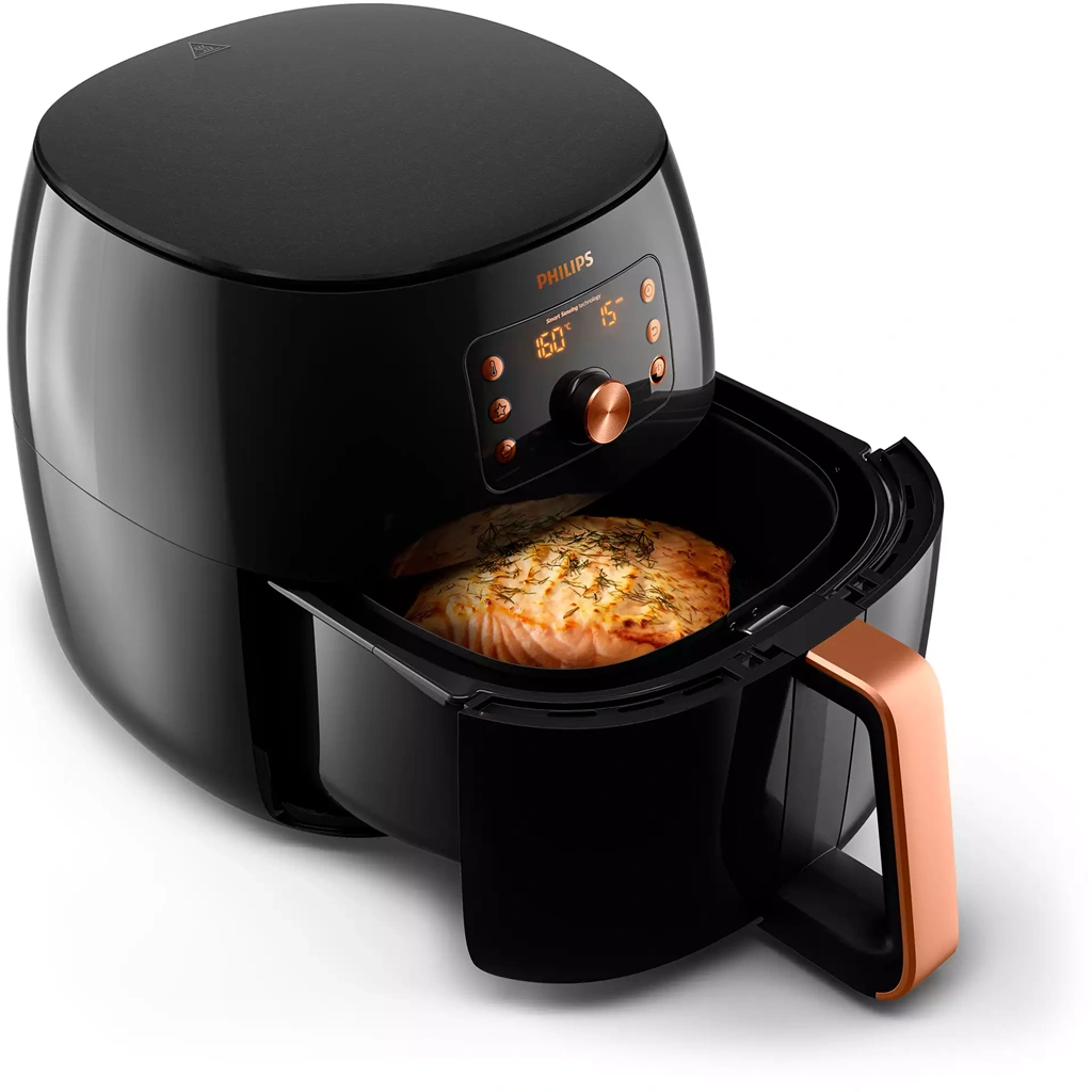 Philips HD9867/90 оснащена технологією Smart Sensing, яка автоматично регулює температуру і час приготування, забезпечуючи ідеальні результати кожного разу. Крім того, функція Keep Warm зберігає готові страви теплими до подачі.
