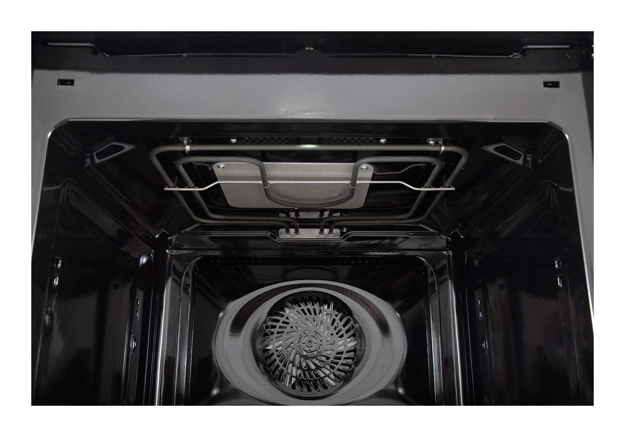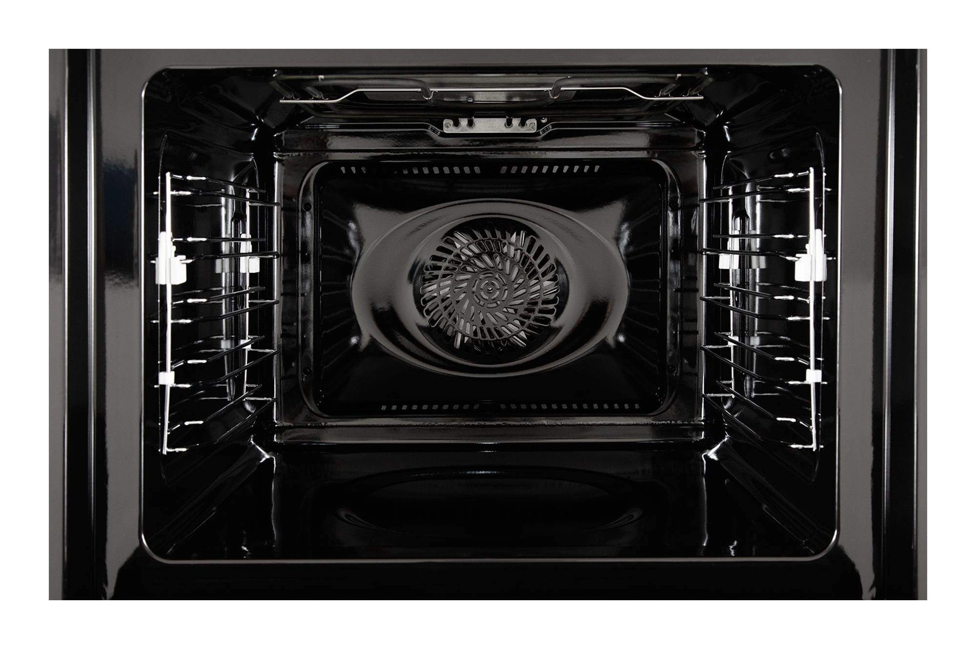 Уникальная система обдува горячим воздухом. Благодаря кольцевому нагревателю, через отверстия на задней стенке духового шкафа, бесшумно работающий вентилятор направляет нагретый воздух, с большой скоростью циркулирующий вокруг блюда.