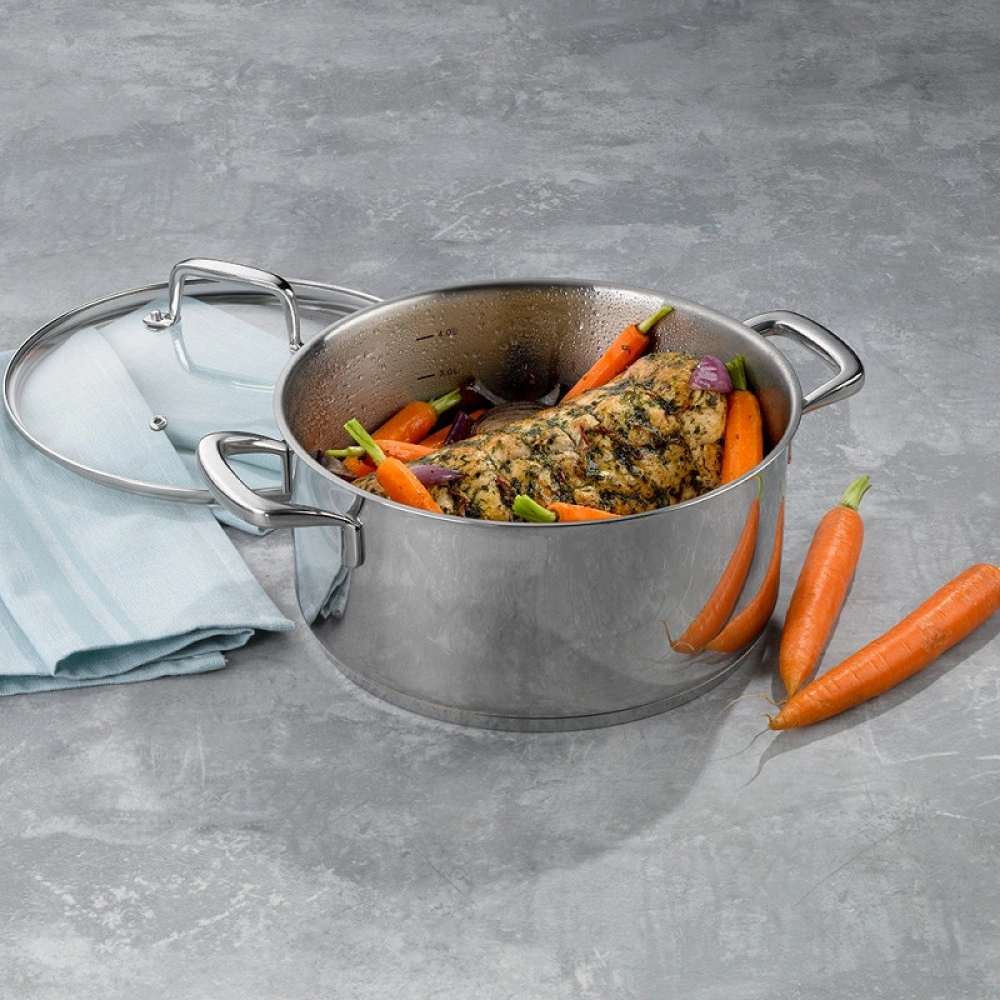 Кастрюля с крышкой Kela Flavoria идеально подходит для варки и тушения. Изготовлена кастрюля из нержавеющей стали 18/10 и имеет стеклянную крышку с ручкой из нержавеющей стали. Серия Flavoria от Kela – настоящая изюминка вашей кухни. С первого взгляда видно высокое качество производства. Глянцевая поверхность снаружи для большей привлекательности и матовая для улучшения рабочих характеристик кастрюли. Посуда этой серии имеет универсальное капсульное дно и подходит для газовых, стеклокерамических, электрических и индукционных плит.