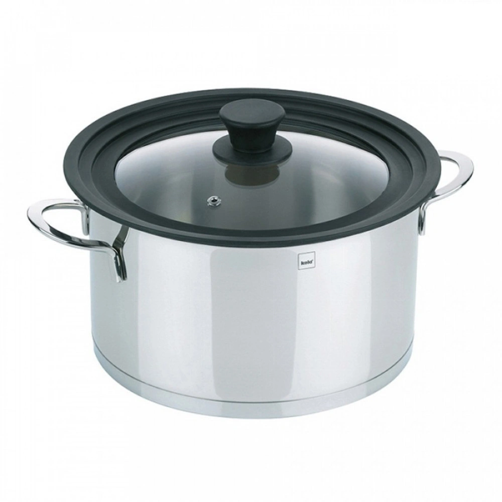 Раньше, чтобы накрыть кастрюлю или сковородку крышкой, нужно было подобрать ее точь-в-точь под нужный диаметр, иначе крышка провалится, если она мала или с краев ее на плиту будет капать конденсат, если крышка слишком велика. Но жизнь не стоит на месте, меняется и совершенствуется все, в том числе и кухонная посуда. И теперь всем домохозяйкам доступно новаторское решение – универсальные крышки с силиконовым ободком. И лучшая из них – стеклянная крышка с силиконовым ободком Kela Concetta от ведущего немецкого производителя посуды и кухонной утвари KELA.