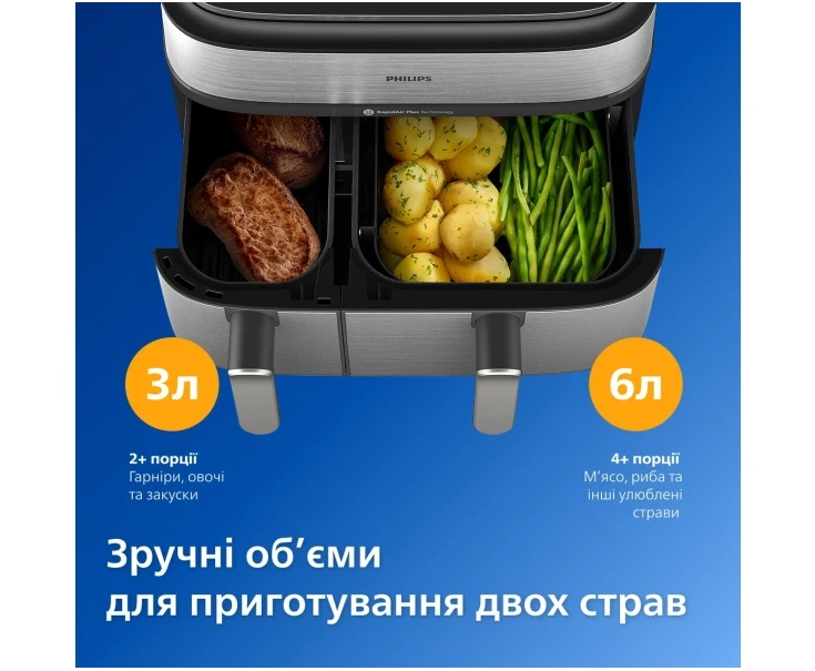 Отзывов о "Мультипечь Philips Dual Basket Airfryer 5000 Series NA555/00" еще нет.