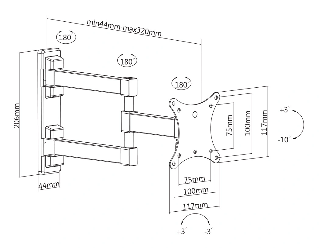 | Наклон | +3° ~ -10° |