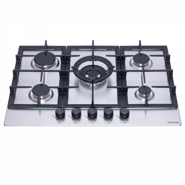Независимая панель Perfelli HGM 71624 оборудована пятью мощными конфорками: одной двухконтурной WOK мощностью 3.8 кВт, одной мощной - 2.9 кВт, двумя средней мощности и одной вспомогательной.