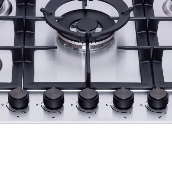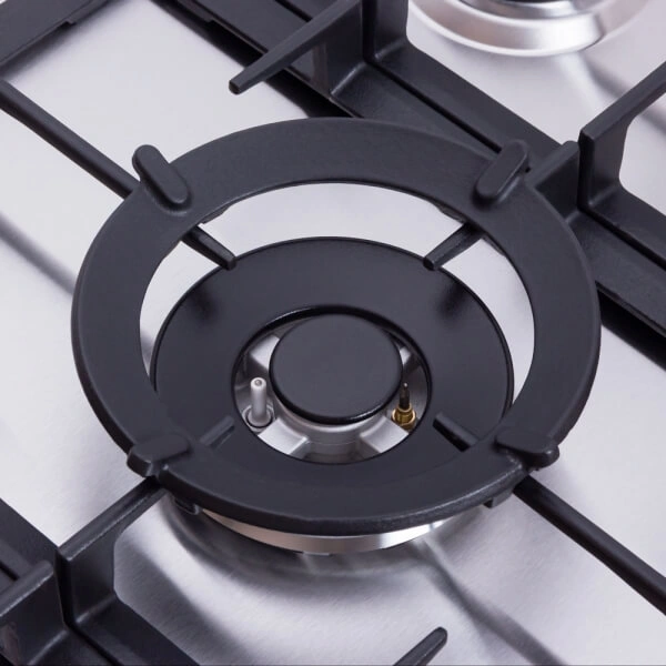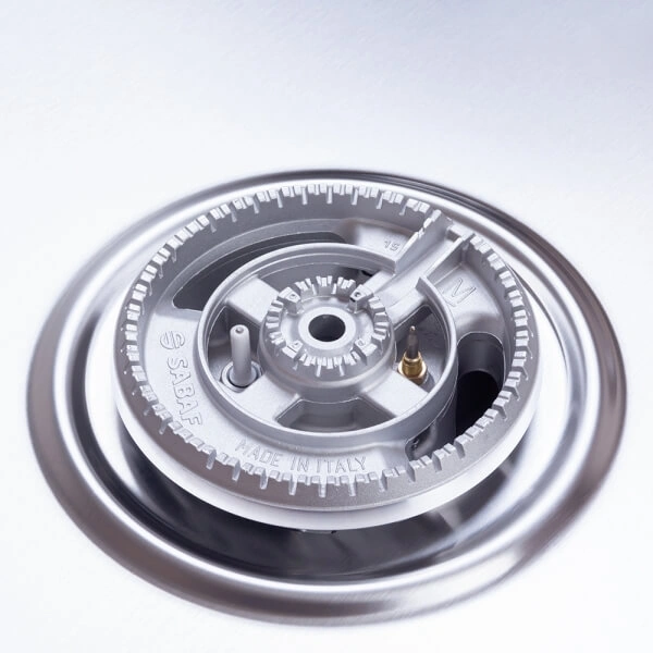 Прибор оснащен функцией электроподжига в ручках управления, системой безопасности “газ-контроль”, WOK горелкой и итальянскими конфорками SABAF - для вашего удобства в приготовлении блюда. Эргономичное расположение горелок обеспечивает дополнительный комфорт при использовании нескольких зон одновременно.