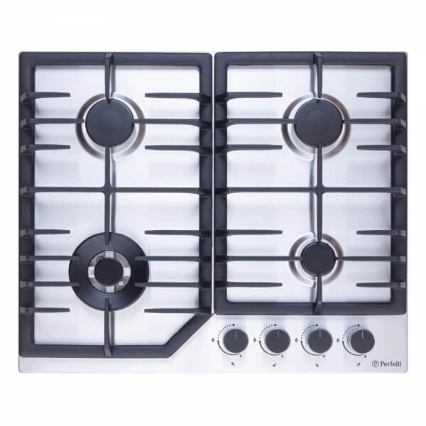 Газовая варочная поверхность Perfelli HGM 61694 - идеальное соотношения качественных комплектующих и функциональности. Материал поверхности изготовлен из нержавеющей стали. Варочная панель оборудована четырьмя газовыми горелками: одной WOK с мощной - 3.8 кВт, двумя средней мощности и одной вспомогательной.