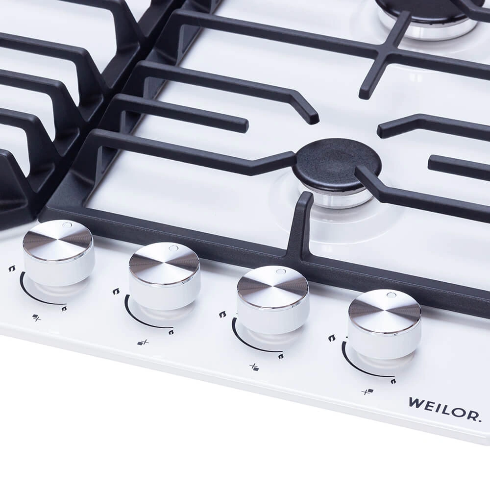 - Варочные поверхности Weilor оснащены системой «газ-контроль», которая автоматически блокирует подачу горючего вещества при отсутствии пламени и обеспечивает максимальную безопасность использования прибора.