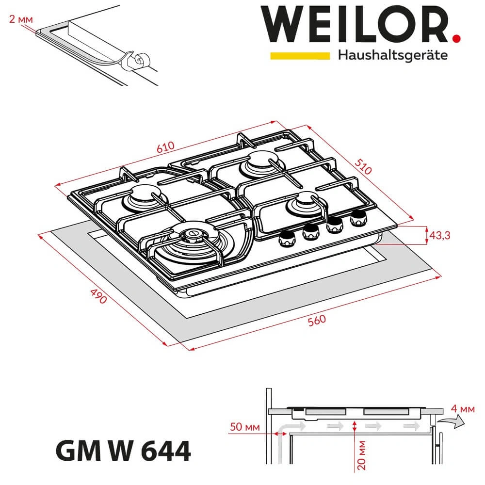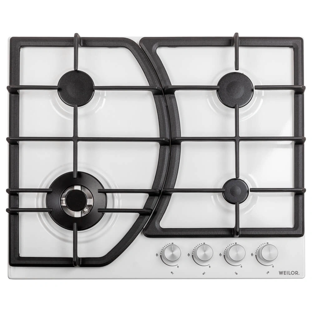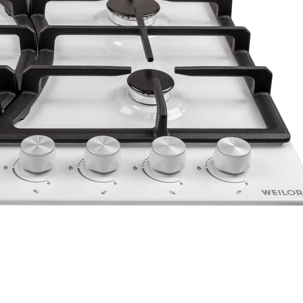 - Варочные поверхности Weilor оснащены системой «газ-контроль», которая автоматически блокирует подачу горючего вещества при отсутствии пламени и обеспечивает максимальную безопасность использования прибора.