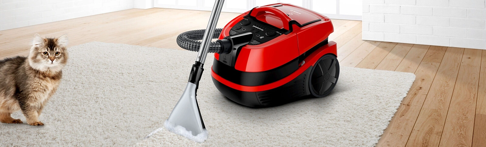 Сухая & влажная уборка: мытье ковров, уборка жидкости и уборка всех видов полов со специальными аксессуарами.
