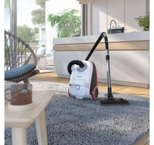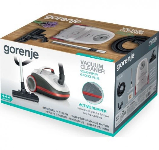 Пылесос Gorenje VCEA 21 GPLW (VCHT4530)Тщательная фильтрация НЕРАДанная модель оснащена фильтром тонкой очистки НЕРА, который позволит отсеять на выходе самые мелкие частицы. Таким образом воздух после уборки будет гораздо чище, а его состав не будет вызывать дискомфорт у аллергиков и астматиков. Индикатор заполнения мешкаВ качестве пылесборной конструкции применен мешок на 3 л. Это достаточно большой объем, позволяющий провести несколько уборок, прежде чем произойдет заполнение всего резервуара. При этом вы сможете отслеживать данный параметр при помощи индикатора, который дает данные об уровне заполнения пылесборника. Плавный пуск двигателяИспользование конструкции с плавным пуском позволило снизить нагрузку на двигатель, за счет чего тот постепенно наращивает интенсивность, способствующую равномерному износу деталей без резких скачков. Автоматический сбор шнураСматывание провода не требует особых усилий, т.к. за этот процесс отвечает механизм, который в автоматическом способе наматывает шнур внутри корпуса. Всего длительное нажатие на кнопку – и он уже внутри! Два типа парковки пылесосаПреимуществом форм-фактора стала возможность осуществления вертикальной и горизонтальной парковки. Это позволит вам удобно располагать устройство и катить его по плоскости. При этом перенос в руках также не доставит неудобств пользователю. Щетки и насадкиДля осуществления уборки в комплекте поставляются щетки и насадки разного формата. Щетка XpandZone имеет большую площадь рабочей поверхности, а 3 дополнительные насадки адаптированы под разные задачи. Купить пылесос Gorenje VCEA21GPLW вы можете, оформив заказ у нас на сайте, а также по телефону горячей линии.