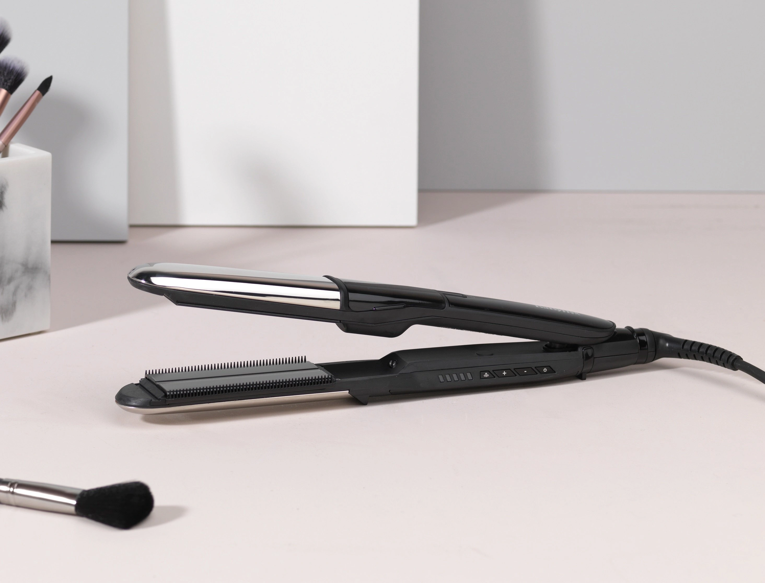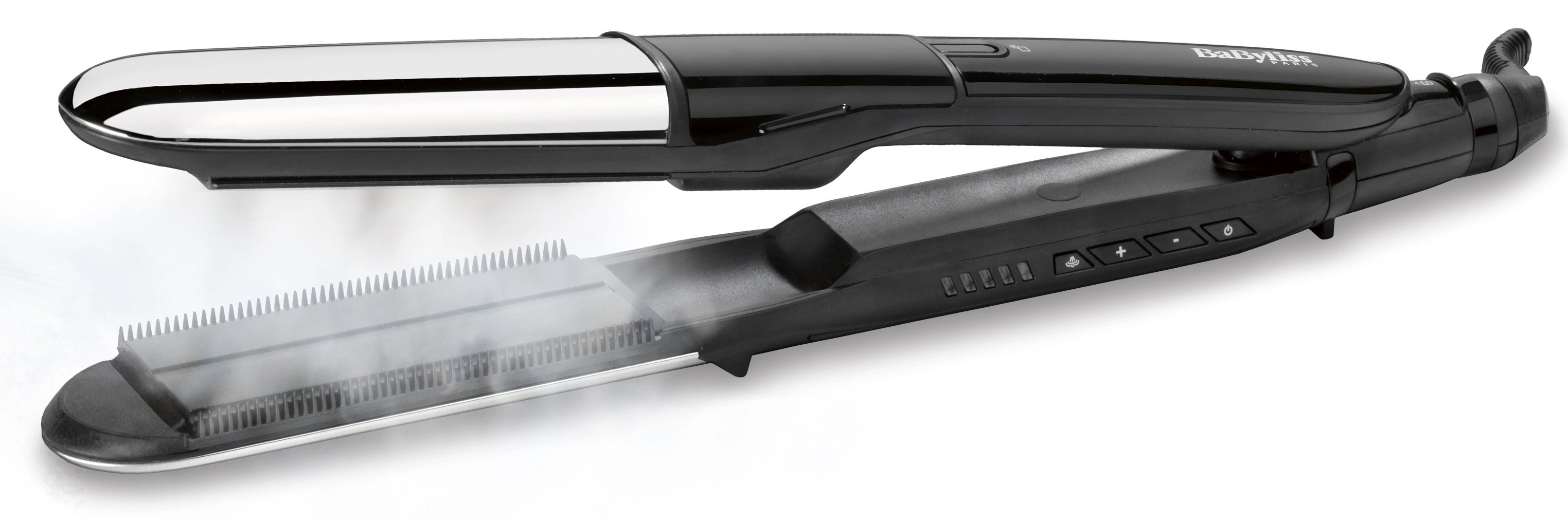 Выпрямитель для волосс функцией пара Babyliss ST496E, 67 Вт, черный. Сегодня выпрямитель для волос один из самых востребованных инструментов для создания укладок и причесок. Рекомендуем обратить внимание на модель Salon Straight от бренда BaByliss. Ее отличием является сверхгладкое, прочное и долговечное покрытие. Этот прибор имеет 5 уровней температуры и может нагреваться до 235°C за довольно короткий промежуток времени. С его помощью можно легко решить вечную проблему девушек: вьющиеся волосы — выпрямить, а прямые — накрутить.