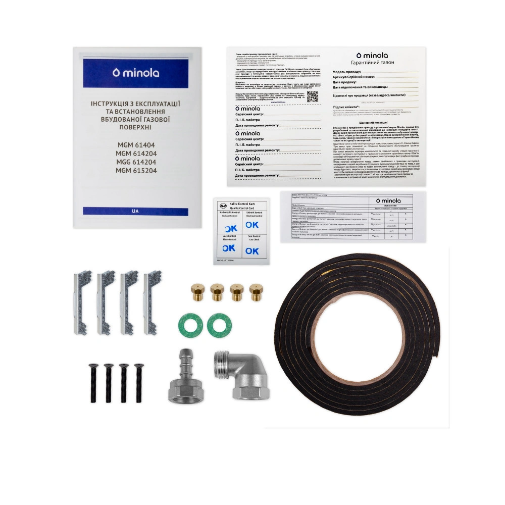 Монтажний комплект Мікрофіша Перехідник на балонний газ Гарантійний талон Інструкція |
