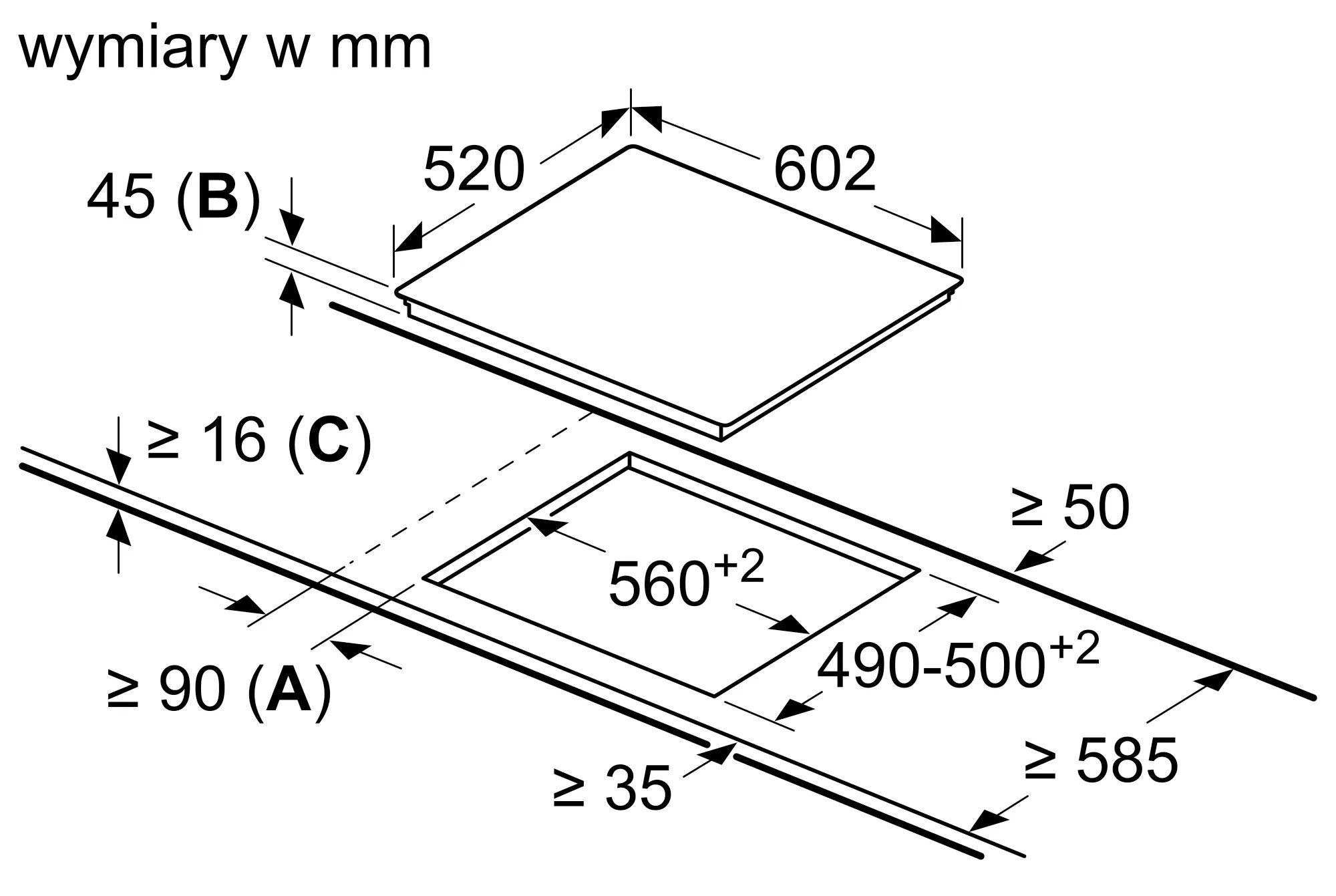Размеры для встраивания (ШхГ) 560x490 мм