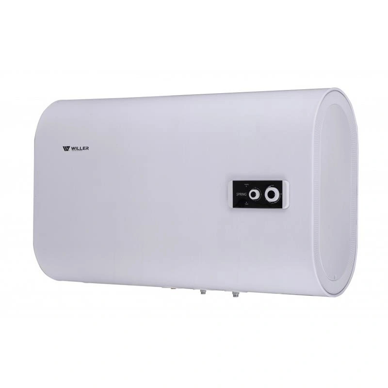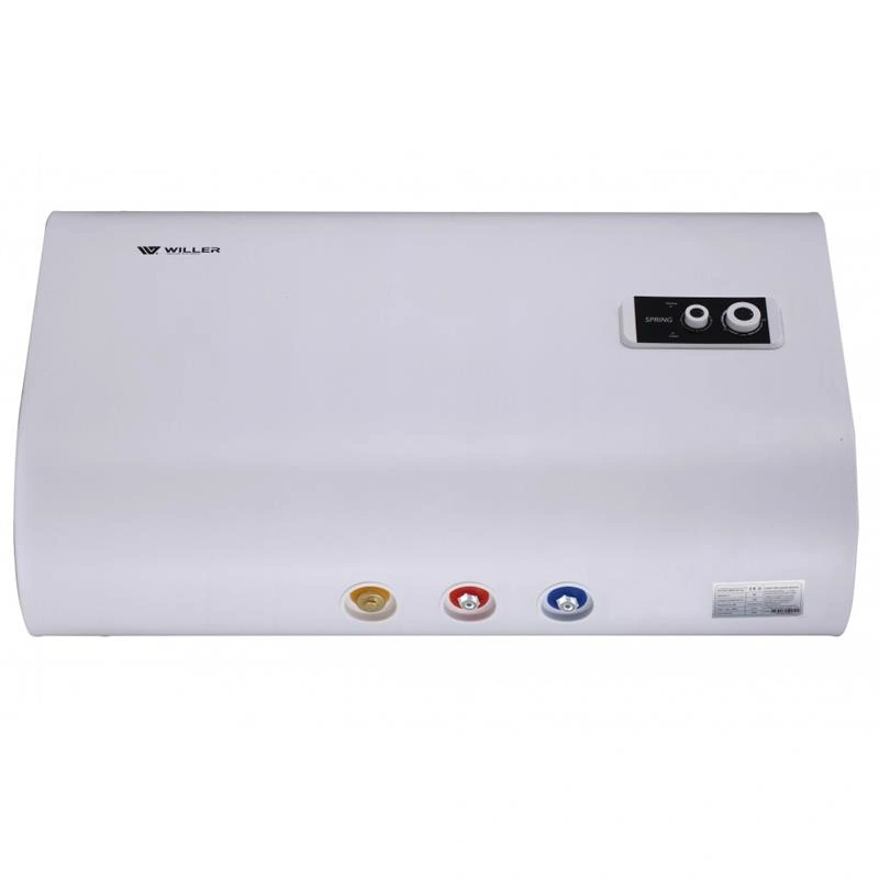 Бойлер Willer EH80R Spring (объём 80л) - надежный плоский Водонагреватель с современным дизайном. Оптимальная конструкция водонагревателя для горизонтальной установки. 2 бака из эмалированной стали, стальной наружный корпус покрытый (окрашенный) эмалью. Водонагреватель предназначен для горизонтальной установки (нижний подвод труб водоснабжения), двойной погружной (мокрый) ТЭН из нержавеющей стали SS316L (на одном фланце в одном баке), выбор одного из 3-х возможных режимов мощности: 2000/1200/800Вт. Кроме самого бойлера в комплект поставки входит многофункциональный предохранительный клапан, комплект крепления на стену, шнур питания, хромированные адаптеры для подключения труб, руководство по эксплуатации на украинском языке и гарантийный талон.