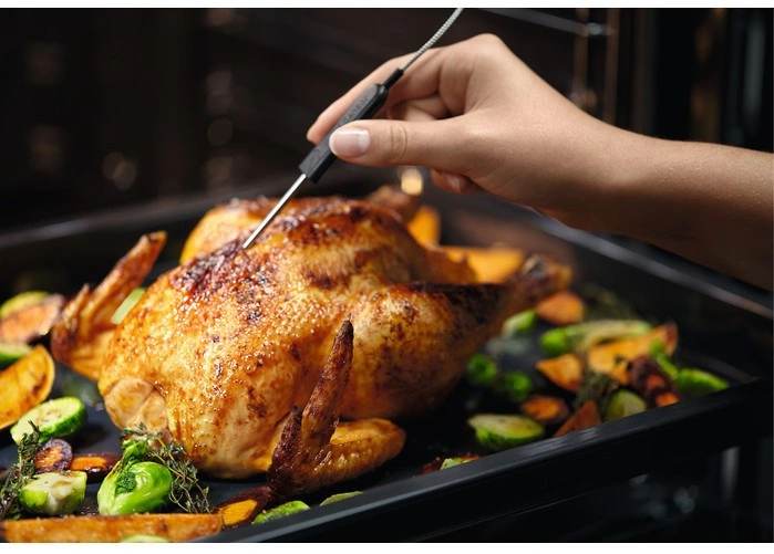 Духовой шкаф оснащен термосенсором, который позволяет следить за ходом приготовления из самого центра вашего блюда.