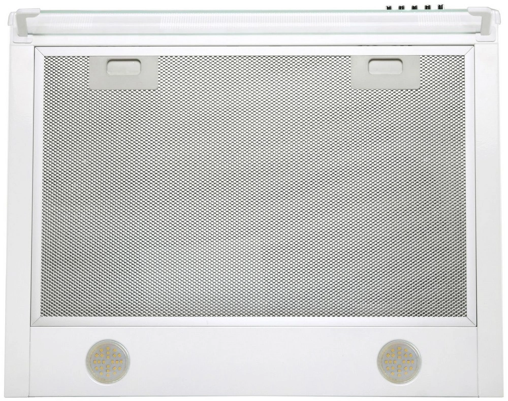 Кухонная вытяжка BONA ІІ LED SMD 50 WH окрашена высококачественной порошковой краской, что делает ее чрезвычайно долговечной и устойчивой к внешним воздействиям, а стеклянный козырек не только довершает эстетическую композицию, но и защищает панель управления от горячего воздуха и жира.