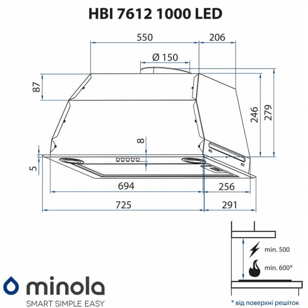 | Тип товара | Встраиваемая вытяжка |