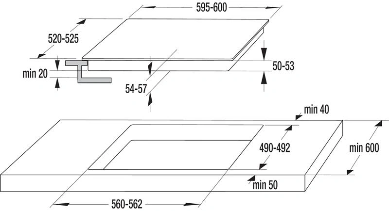 | Мінімальна ширина для вбудовування | 56 см |