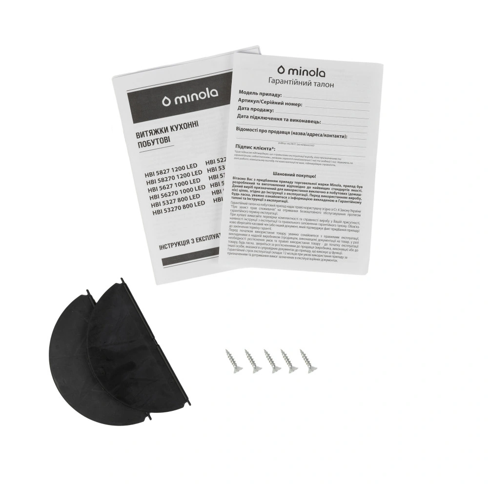 | Комплектація | Витяжка Зворотній клапан монтажний комплектШнур з вилкоюІнструкціяМікрофіша Гарантійний талон |