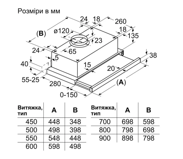 | Тип товару | Витяжка телескопічна |