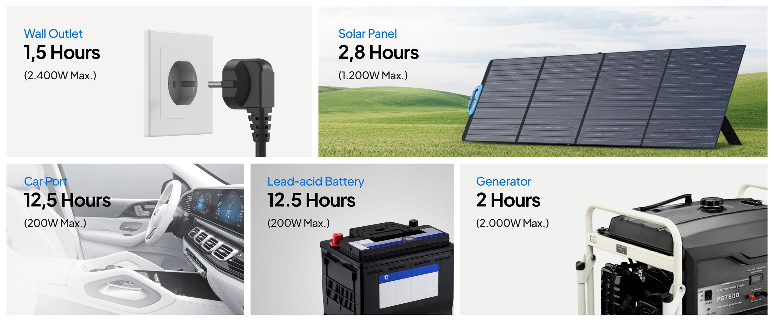 Завдяки гнучкій можливості заряджання від мережі змінного струму, сонячних батарей, автомобільного зарядного пристрою, генератора або свинцево-кислотних акумуляторів ви можете залишатися під напругою і з упевненістю досліджувати незвідане навіть далеко від мережі.